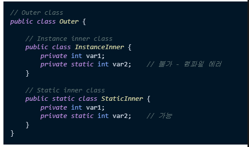 내부 클래스에 static을 붙여줘야 하는 이유 :