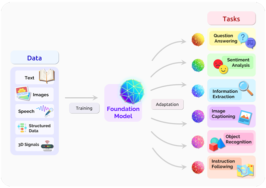 즉, LLM(대형 언어 모델)과 같은 Foundation Models은 학습된 범용 지식을 바탕으로, In-Context Few-Shot Learning과 Prompt Engineering을 통해 재학습 없이도 특정 작업을 수행할 수 있도록 유도할 수 있습니다.