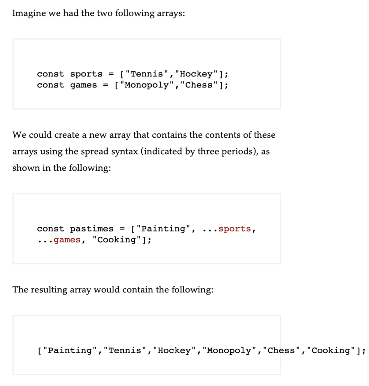 ...sports, ...games를 사용해서 배열 정의 가능함.