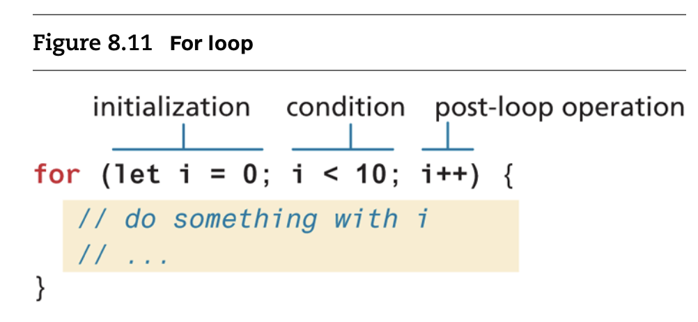- For loops combine the common components of a loop—initialization, condition, and postloop operation—into one statement.