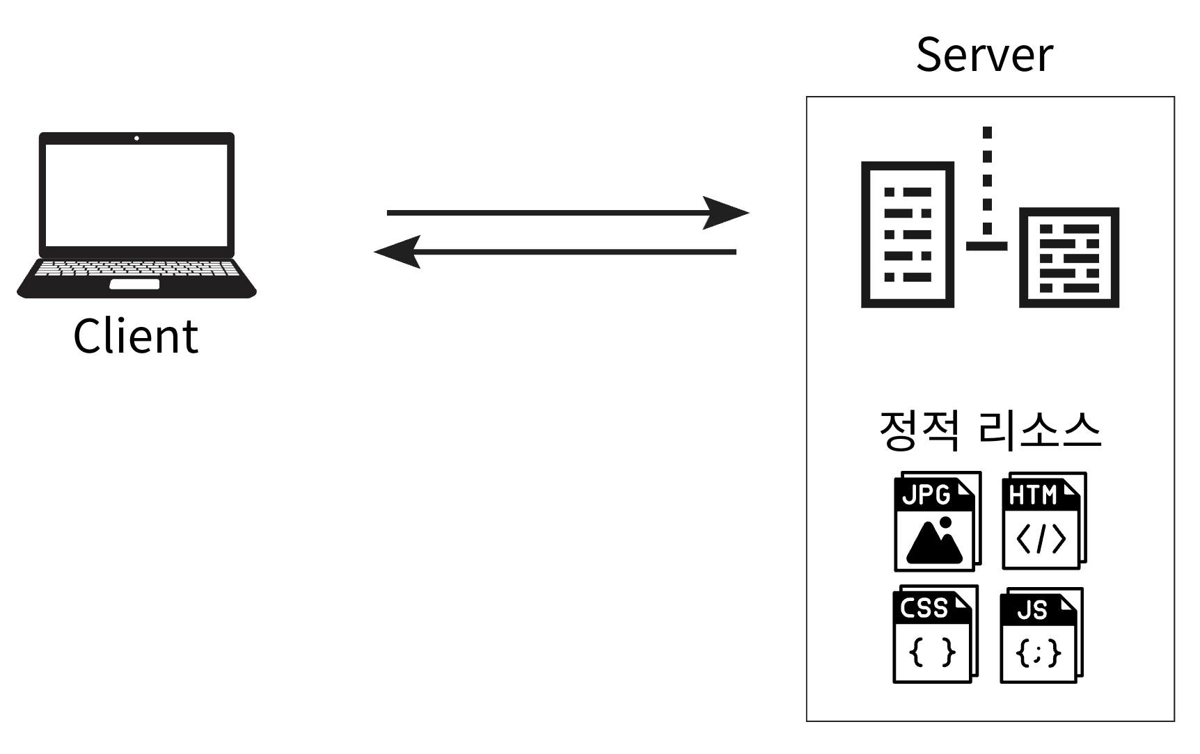 | 정적 리소스 | HTML, CSS, JS, 이미지 등 | 고정된 파일 다운로드 또는 웹 화면 표시 |