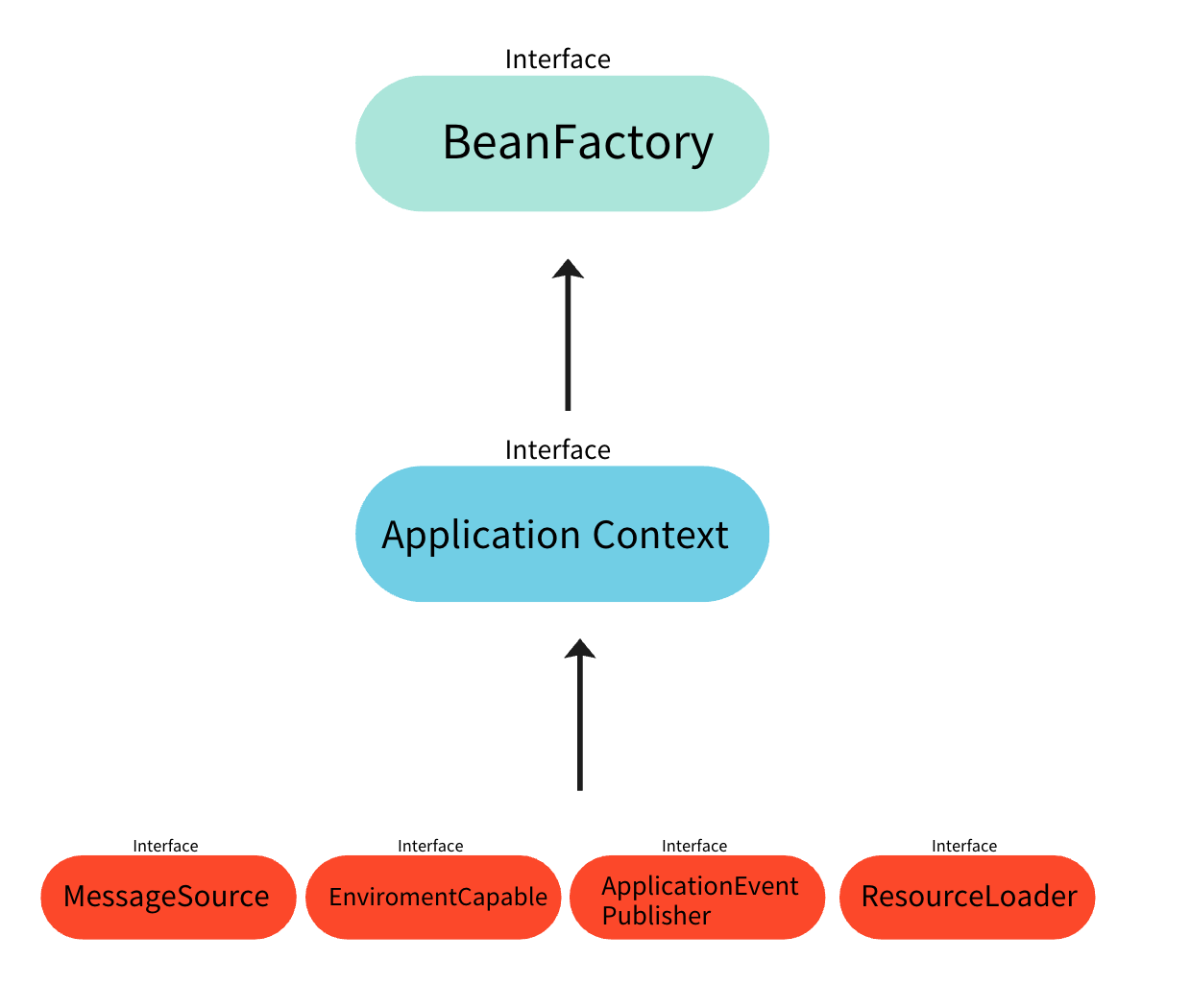 ApplicationContext | 실제로 많이 사용하는 컨테이너 | 국제화, 이벤트, 리소스 처리 등 다양한 기능 추가 |