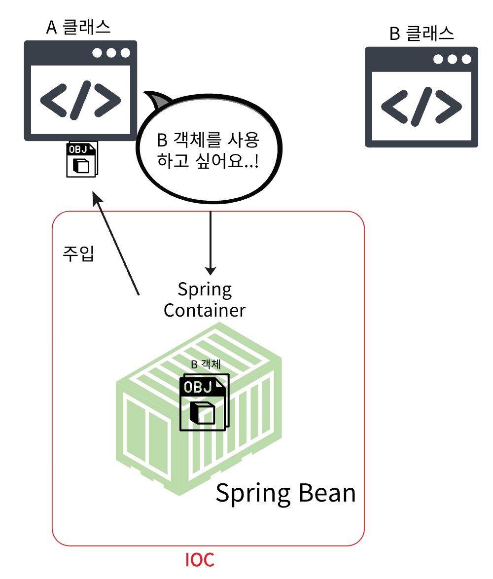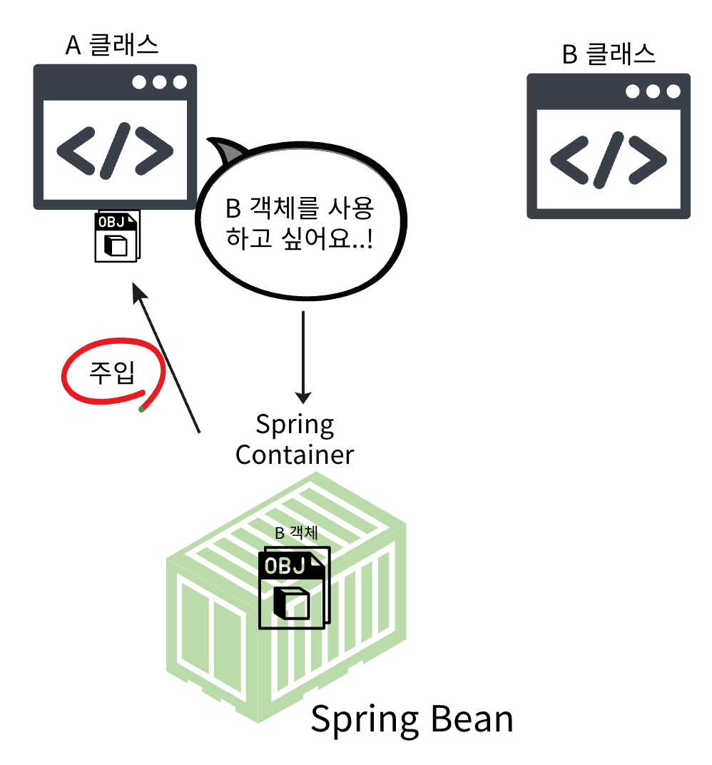 - 개발자가 직접 new 하지 않고, 필요한 객체를 Spring이 주입해 줌
