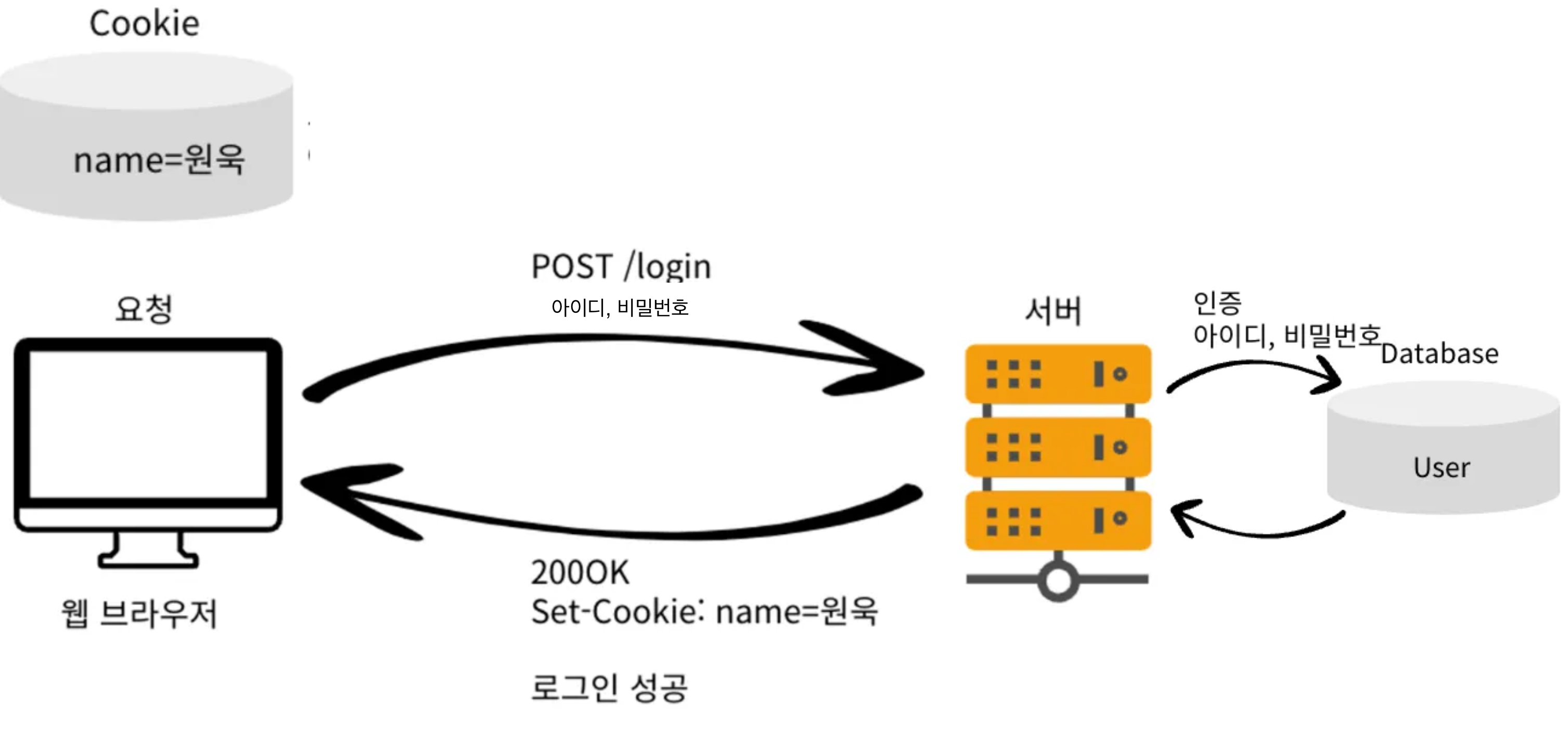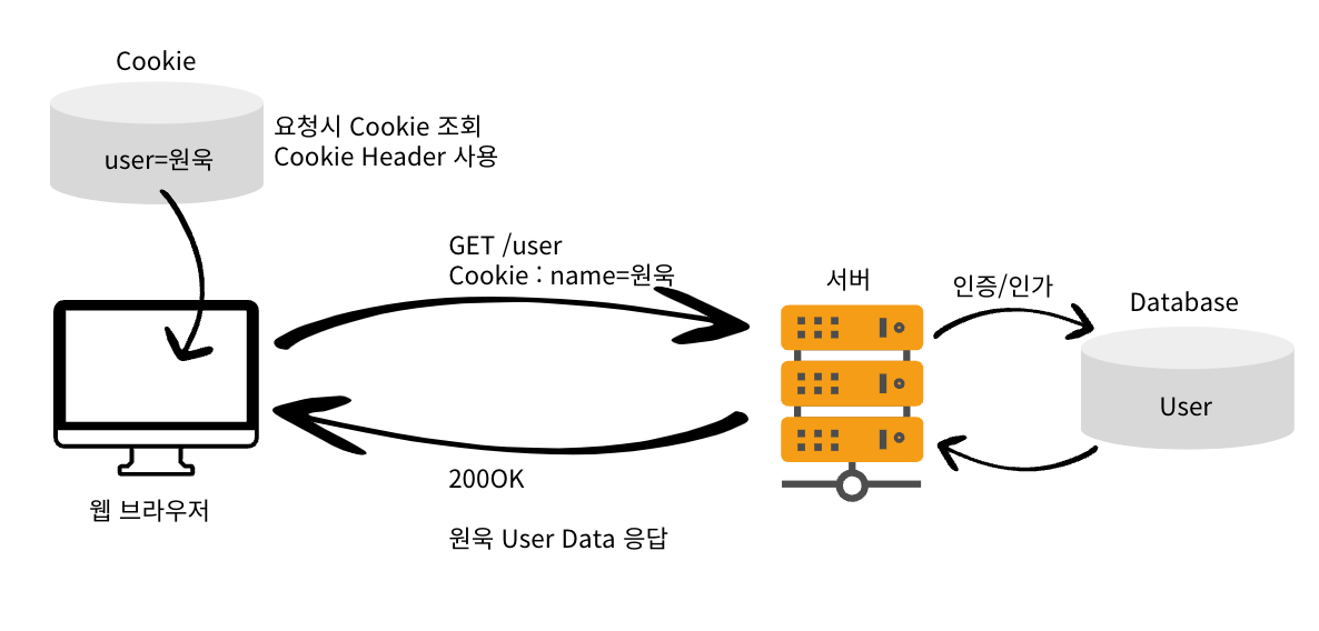 쿠키는 브라우저에 저장되고, 서버에 요청할 때마다 자동으로 포함되어 전송됨
