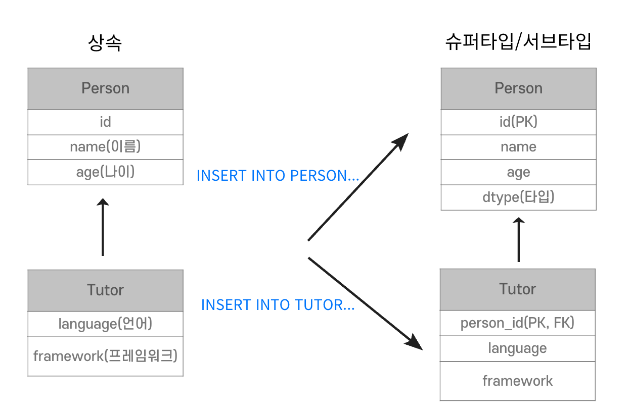 | 상속 | 지원 | 미지원 | JOIN 필요 |