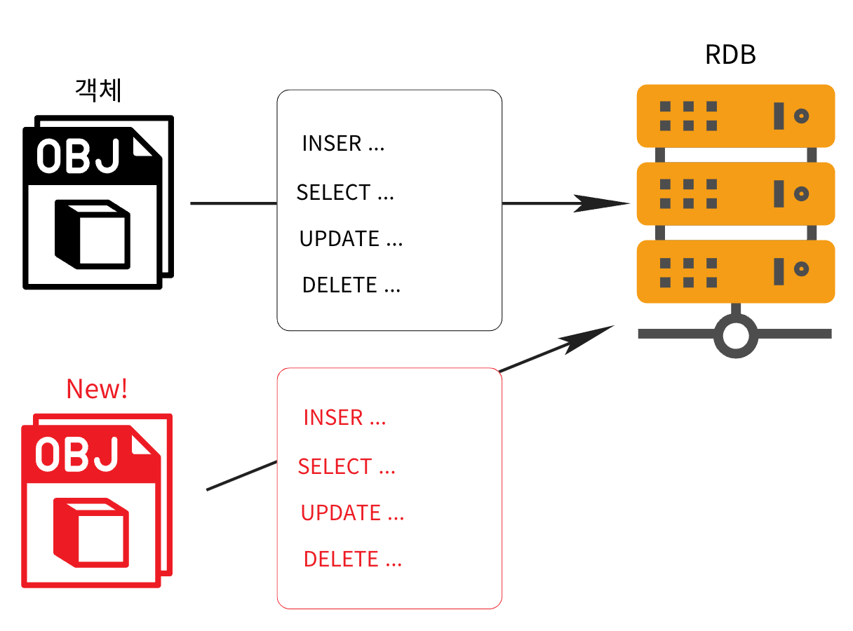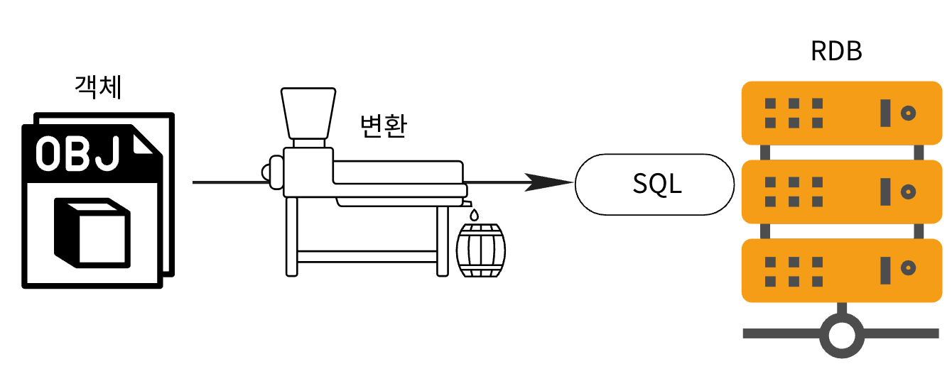 Java에서는 객체를 만들고, 이걸 RDB에 저장하려면 SQL을 직접 작성해야 함