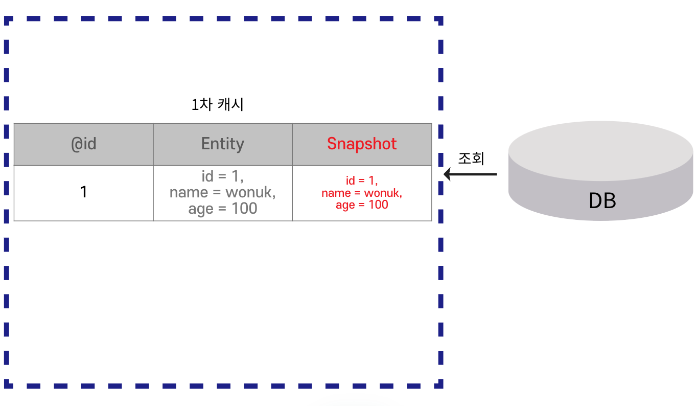 | 📸 스냅샷 | 최초 조회 상태 복사본 | find() 직후 | 비교 기준 |