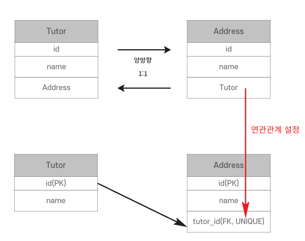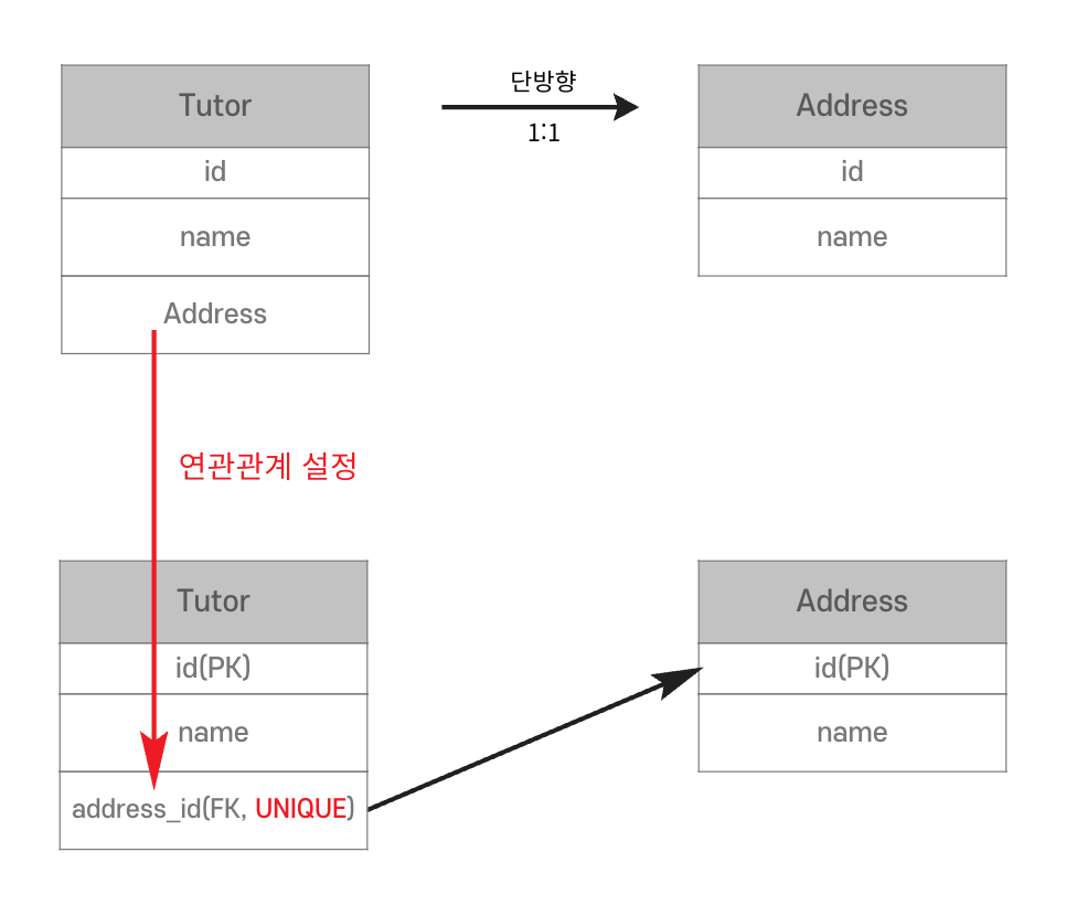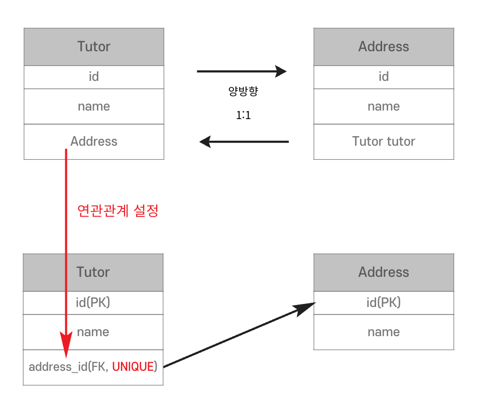 👉 즉, Tutor가 FK를 관리하고 Address는 단순히 참조만 함