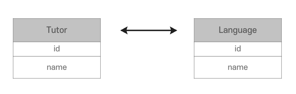 Collection을 사용하여 N:M 설정이 가능함Tutor가 여러 개의 Language를 사용할 수 있음🗄️ 데이터베이스 관점