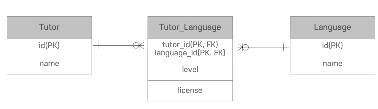 | 🔑 PK 구조 | 복합키 (tutor_id, language_id) | 단일 PK (id) |