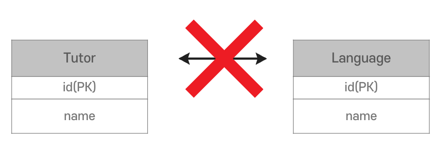Tutor와 Language 사이에 level, license 같은 속성을 넣을 수 없음@ManyToMany는 단순 연결만 가능2. 숨겨진 중간 테이블