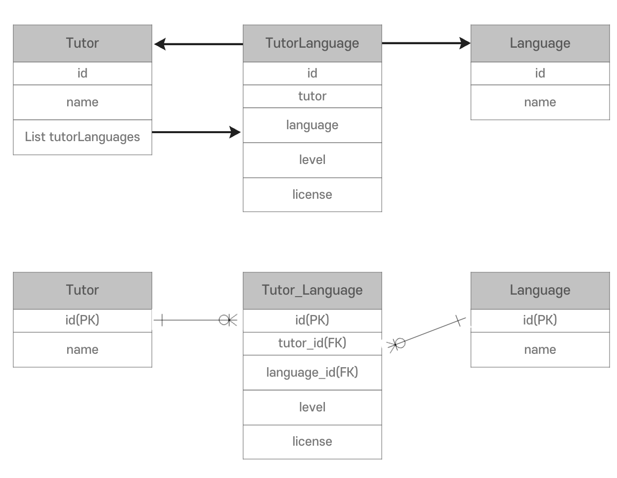 Tutor(1..N) ◀───▶ Language(1..N)