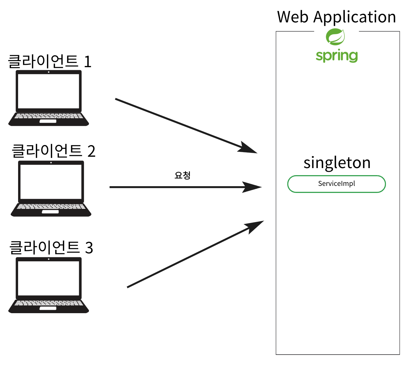 | Singleton (기본) | 컨테이너 시작 시 1회 생성 | Spring이 관리 | Service, Repository | 전역 공유 Bean, 상태 없음 |
