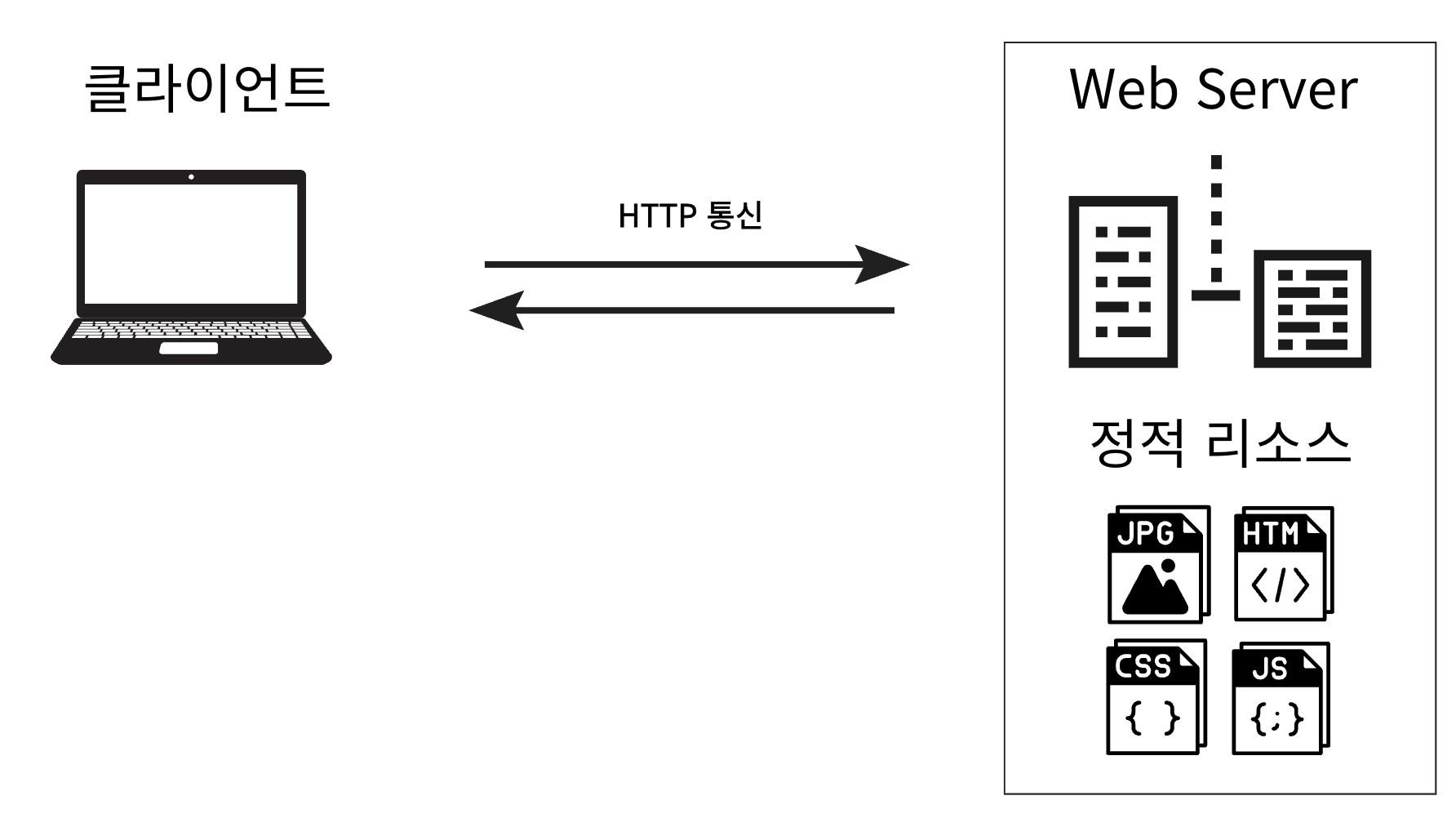 → 정적 리소스: 서버에 이미 존재하는 변경되지 않는 파일
