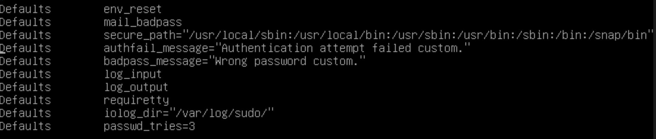 "/var/log/sudo/" 폴더가 존재하는 지, 그리고 그것이 최소한 한 개의 파일을 갖는 지 확인하세요. 이 폴더 속 파일들의 내용을 확인할 때, sudo와 함께 사용된 명령어들의 기록을 볼 수 있어야합니다. 최종적으로, sudo를 통해 명령어를 실행해보세요. 그리고 "/var/log/sudo/" 폴더 속 파일(들)이 업데이트되었는 지 확인합니다.