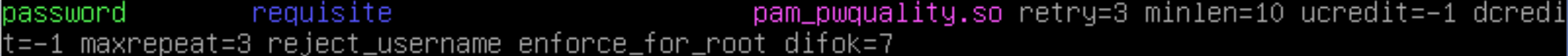 이 과제에서는, 피평가자가 로그인한 유저가 가상머신 속에 존재할 것을 요구합니다. 유저가 추가되었는지, 그리고 그것이 "sudo"와 "user42" 그룹에 속하는 지 살펴보세요. 이 과제에는 비밀번호 정책에 관해 제시된 규칙들이 있습니다. 이 규칙들이 제대로 설정되었는지 다음 절차를 따라 확인해보세요. 먼저, 새로운 유저를 생성합니다. 과제에 제시된 규칙에 맞춰 임의로 그 비밀번호를 만듭니다. 이제 피평가자는 어떻게 자신들이 과제에 제시된 규칙들을 설정했는지 설명해야합니다. 보통 1개 혹은 2개의 수정된 파일들이 있어야 합니다. 만일 어떤 문제라도 생긴다면, 여기서 평가를 중단하십시오.