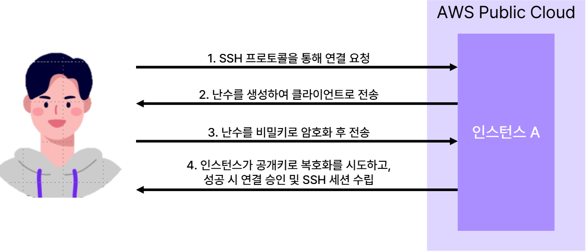 - 인스턴스 생성 시에 등록한 키 페어의 비밀키를 사용하여 인증 후 연결할 수 있음