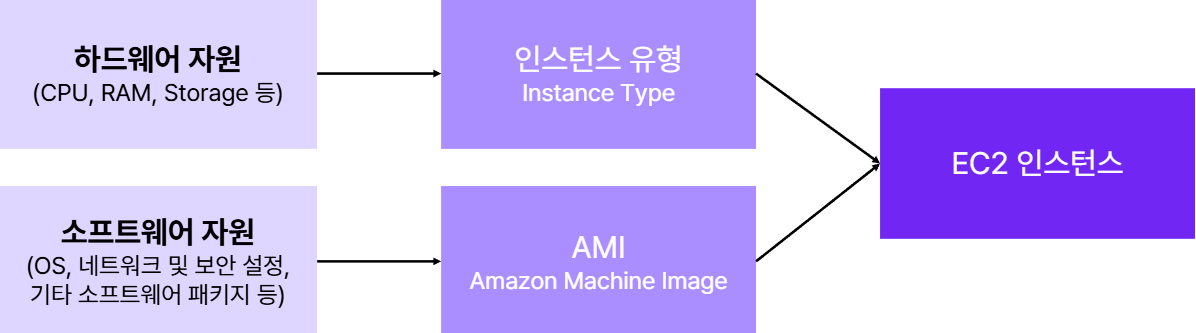 인스턴스 유형과 AMI를 통해 각각 하드웨어 자원과 소프트웨어 자원을 지정할 수 있음