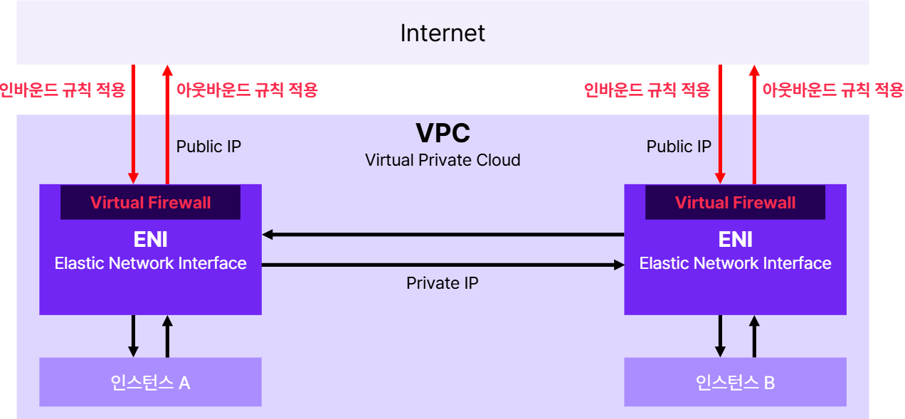 - EC2 인스턴스에 설정할 수 있는 가상 방화벽