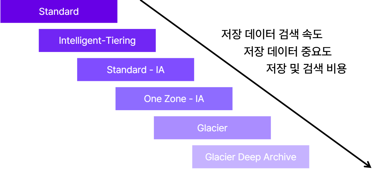 데이터를 저장하는 최상위 컨테이너 특정 리전에 생성할 수 있음 버킷 이름은 전세계적으로 고유해야 하며, 생성 이후 변경 불가함