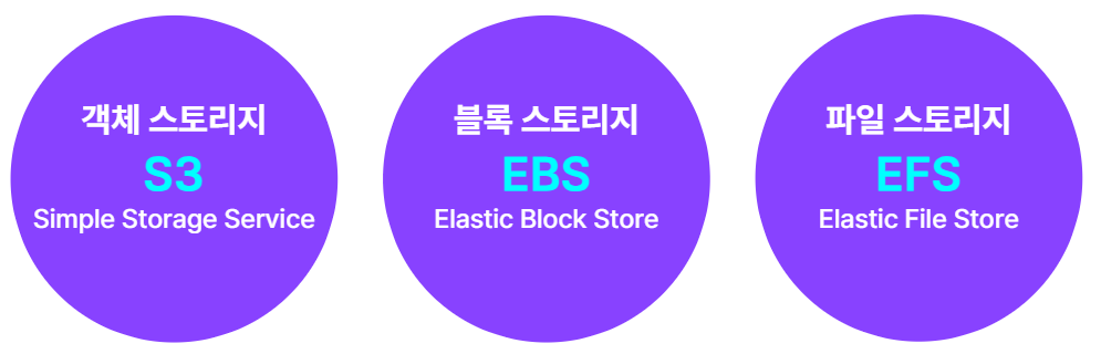 객체 스토리지 S3 블록 스토리지 EBS 파일 스토리지 EFS