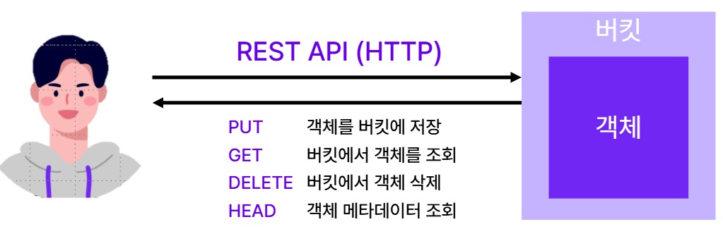 버킷에 저장되는 개별 데이터 단위 데이터와 메타데이터를 가짐 각 객체는 버킷 내에서 고유한 키를 가짐 버킷 이름과 객체 키를 조합하여 식별자로 사용함