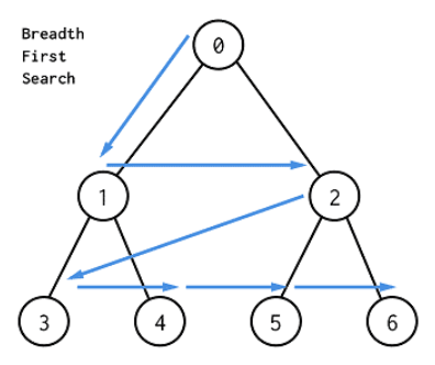- 루트 노드에서 시작해서 인접한 노드를 먼저 탐색하는 방법