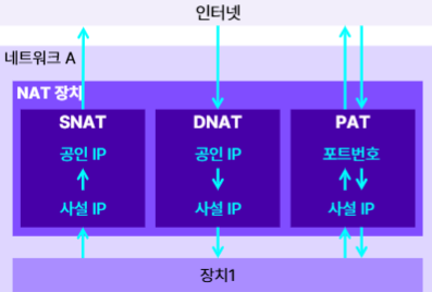 사설 네트워크 내의 장치가 외부 네트워크와 소통할 필요가 있을 때, 사설 IP - 공인 IP 간 주소를 변환하는 것