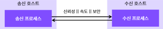 송수신 프로세스 간에 통신 목적에 따라 신뢰성, 속도, 또는 보안을 제공