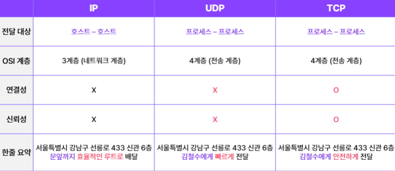- IP 주소를 사용하여 목적지 호스트를 식별