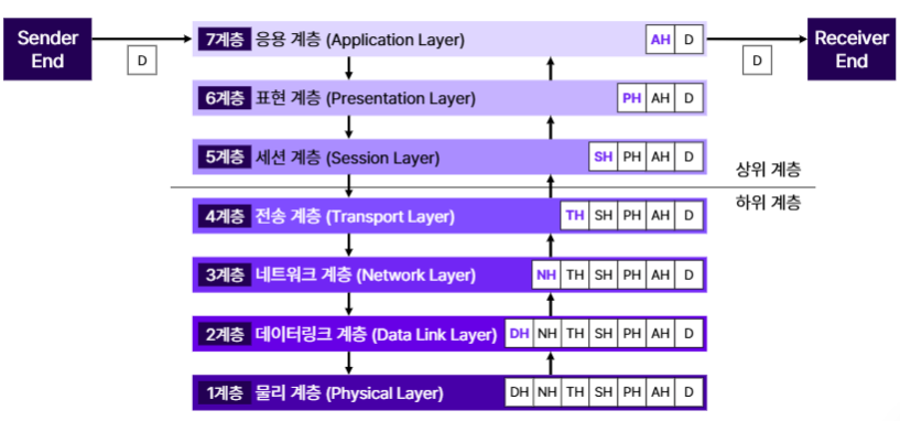 네트워크의 복잡한 동작을 7개의 계층 간의 상호작용으로 설명