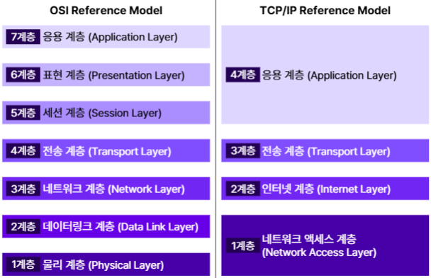 - 복잡한 네트워크의 상호 연결 구조를 표준화하기 위해 만든 참조 모델