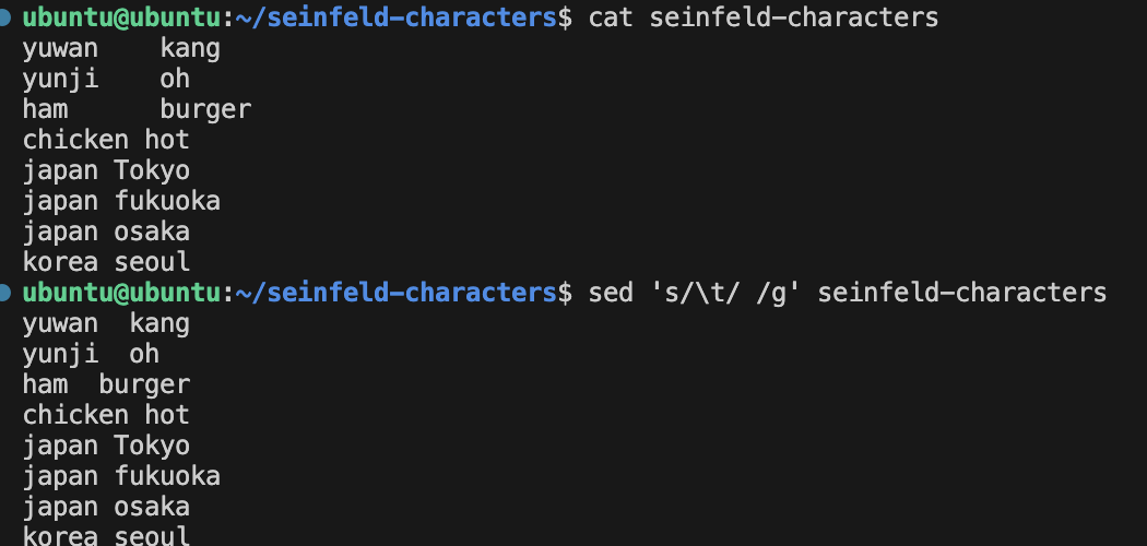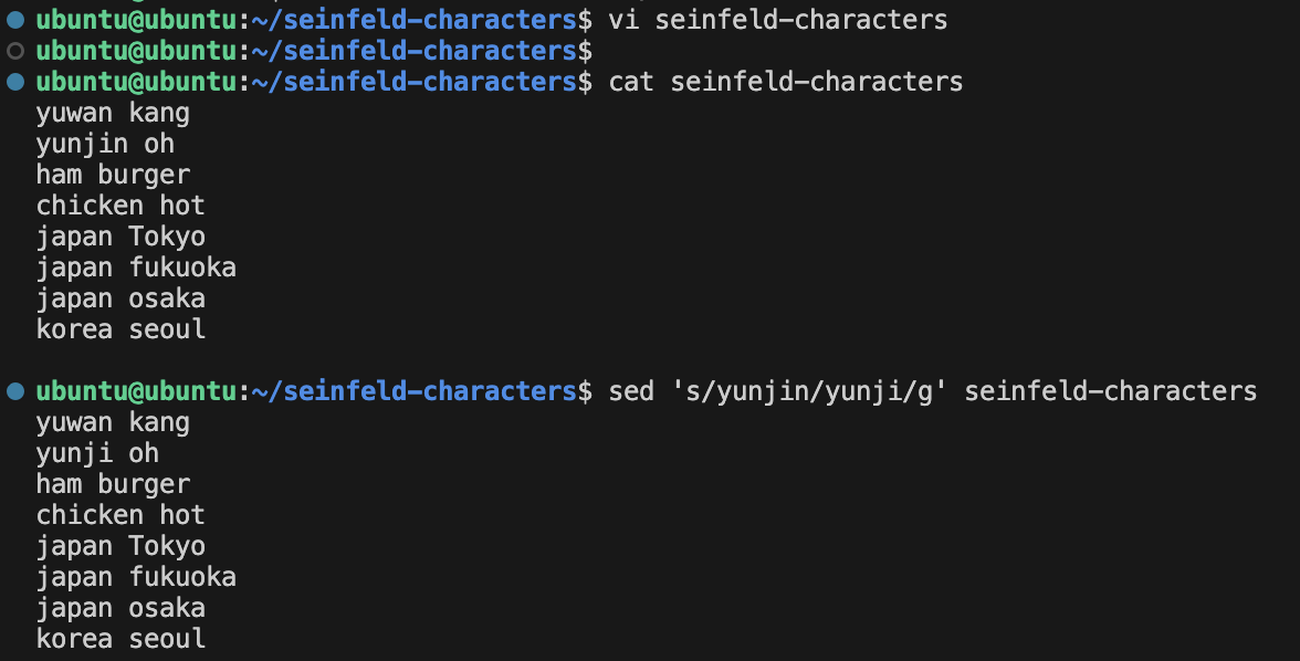 sed 's/바꾸고싶은단어/바꿀단어/g' 출력할 파일명