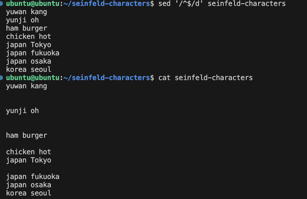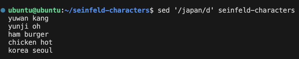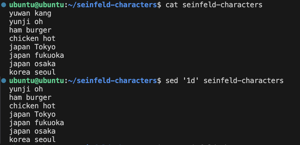 sed 명령어는 파일을 직접적으로 영향 주지 않고 화면 출력에서만 보여준다.