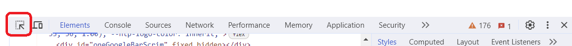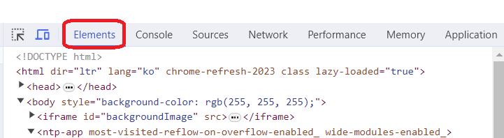 요소 검사 버튼을 누르고 웹 페이지의 원하는 요소에 마우스를 올리면 대상의 정보가 출력되고, 그 상태에서 클릭하면 그와 관련된 HTML 코드가 하이라이팅 된다.