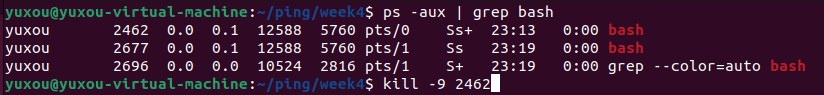 ๐ก ๊ธฐ์กด ํฐ๋ฏธ๋ ์ฐฝ์์ kill ๋ช ๋ น์ด๋ฅผ ์ฌ์ฉํ์ฌ ๋ค๋ฅธ ํฐ๋ฏธ๋ ์ฐฝ์ ์คํํ๋ bash ํ๋ก์ธ์ค๋ฅผ ๊ฐ์ ๋ก ์ข ๋ฃํ์์ค.