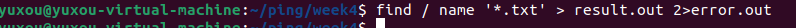 ๐ก find ๋ช ๋ น์ด๋ฅผ ์ฌ์ฉํ์ฌ ์ ์ฒด ๋๋ ํ ๋ฆฌ์์ .txt๋ก ๋๋๋ ๋ชจ๋ ํ์ผ๋ค์ ์ฐพ๊ณ , ์ ์์ ์ธ ์คํ ๊ฒฐ๊ณผ๋ result.out ํ์ผ์ ์ ์ฅํ๊ณ ์๋ฌ ๋ฉ์์ง๋ error.out ํ์ผ์ ์ ์ฅํ๋ ๋ช ๋ น์ด๋ฅผ ์ํํ์์ค.