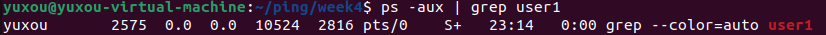 ๐ก BSD ์ต์ (aux)์ ์ฌ์ฉํ๋ ps ๋ช ๋ น์ด์ grep ๋ช ๋ น์ด๋ฅผ ํ์ดํ๋ก ์ฐ๊ณํ์ฌ ํผํฉํ๋ ๋ฐฉ๋ฒ์ผ๋ก, user1์ ๊ด๋ จ๋์ด ํ์ฌ ์ํํ๋ ๋ชจ๋ ํ๋ก์ธ์ค๋ฅผ ํ์ธํ์์ค.