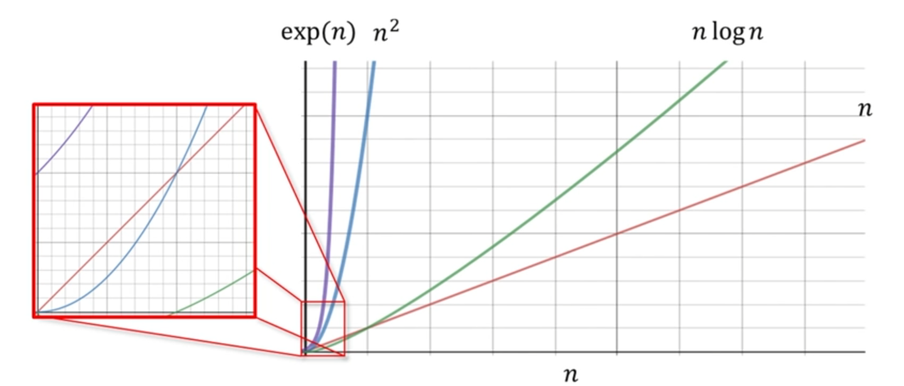 - 시간 복잡도(계산 복잡도)가 낮을수록 더 알고리즘의 성능 (performance → 빠르고 적은 메모리)가 좋다고 한다.