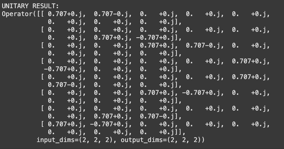 print(f'UNITARY RESULT:\n{unitary_result.get_unitary(decimals=3)}')