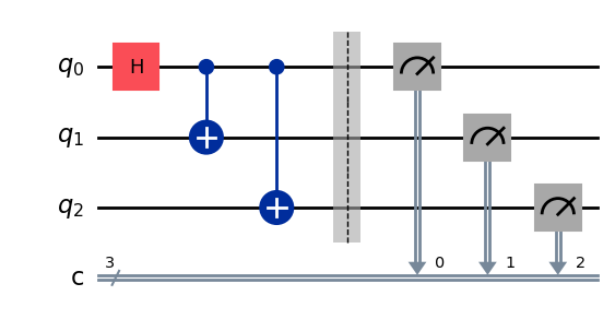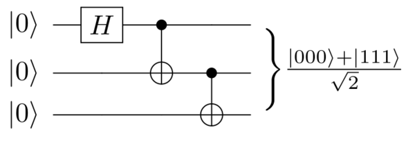 3개의 큐비트를 예로 들어, 하나라도 측정되면 나머지 2개의 상태가 즉시 결정됩니다. 첫 번째 큐비트를 측정해서 |0>가 나오면, 나머지 2개도 자동으로 |00>가 되며, 반면에 |1>로 나오면 나머지 2개도 자동으로 |11> 상태가 됩니다.