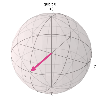 ∣+⟩ 상태는 X축 방향 (θ = π/2, φ = 0) 벡터로 표시됩니다.