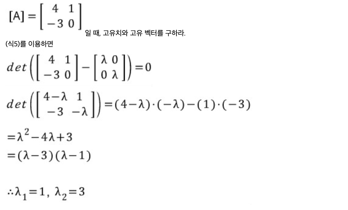 의 특성 방정식을 구해야 하며, 방정식은 아래와 같이 나타낼 수 있다. 이때,