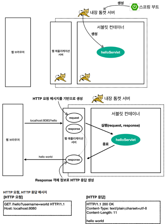 @ServletComponentScan을 통해서 @Servlet들을 모두 Servlet Container에 생성한다Request, Response 객체를 생성한다Service 메서드를 호출하면서 인자값에 Request와 Response를 넘겨준다Content-Length는 웹 애플리케이션 서버(WAS)가 자동으로 생성해준다!!!