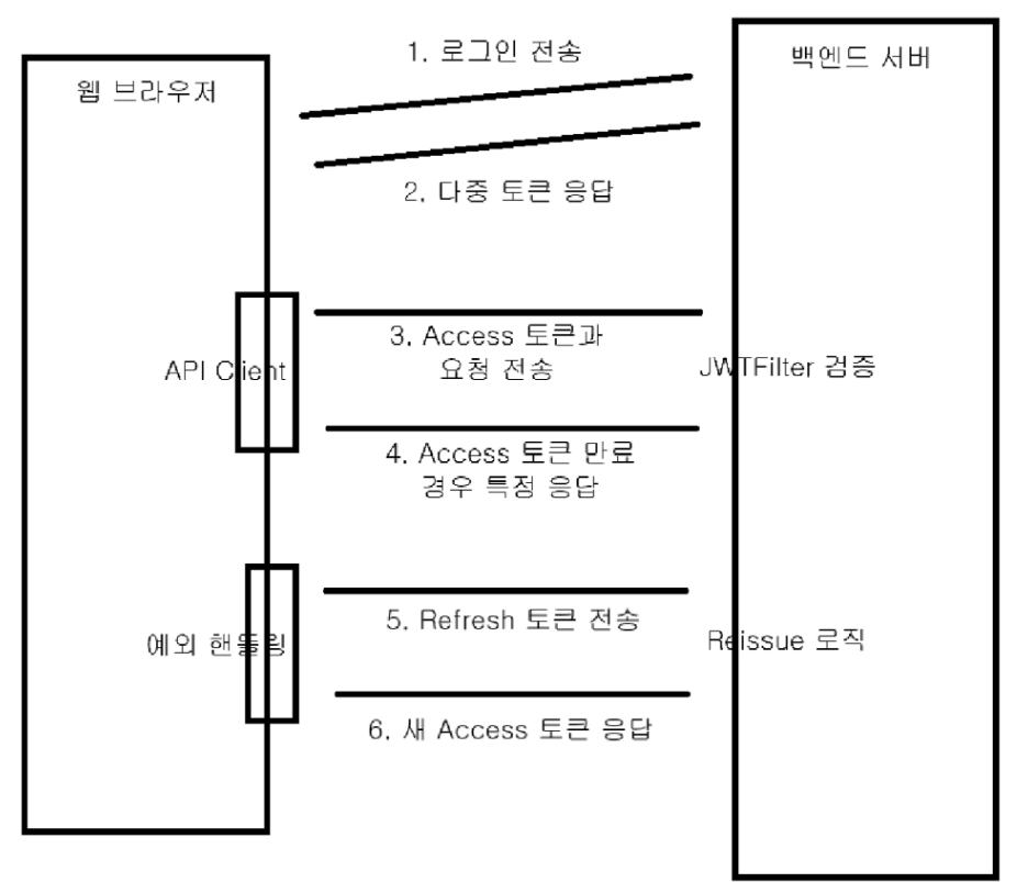 ✅서버의 Refresh 토큰을 받는 특정 경로로 요청을 보내 Acess token을 재발급 받는다