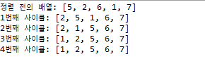 System.out.println(i+1+"번째 사이클: "+ Arrays.toString(arr));