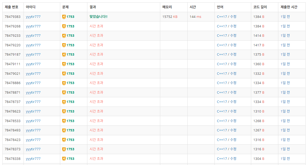 과 같은 코드를 삽입하여도 결과는 시간초과였다. 2시간정도 코드를 뜯어보고 삽질해본 결과, 우서순위 큐에서 실수를 하였다.