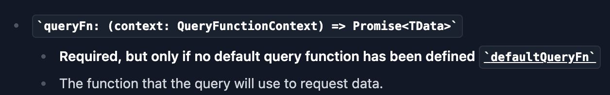 queryFn에는 데이터를 요청할 때 실행시킬 함수를 작성한다.