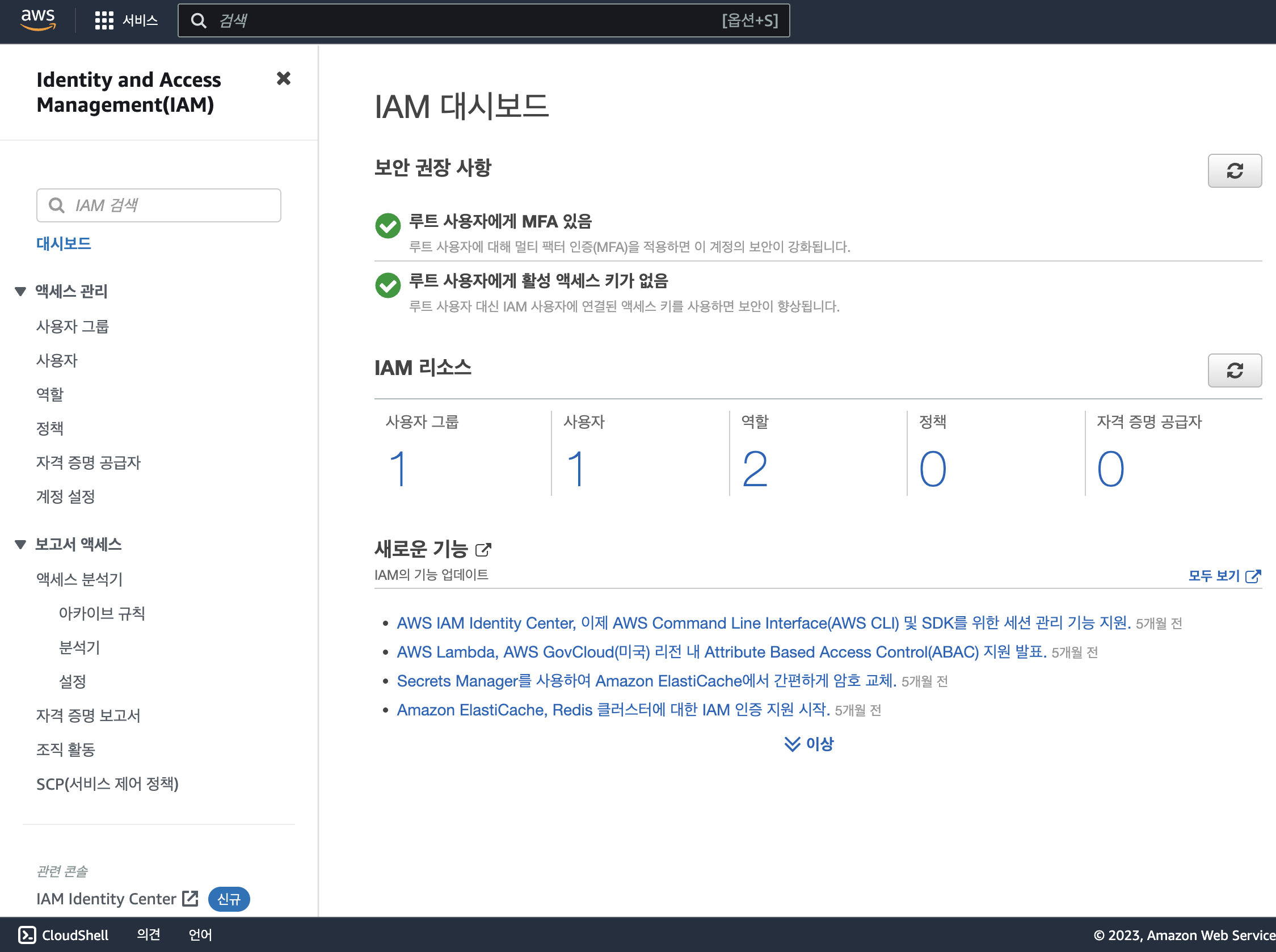 루트 계정에서 설정해줬던대로 똑같이 따라 설정해주면 된다. IAM 계정도 특정 권한이 부여된 사용자니까 보안 설정을 해두는 편이 좋다.