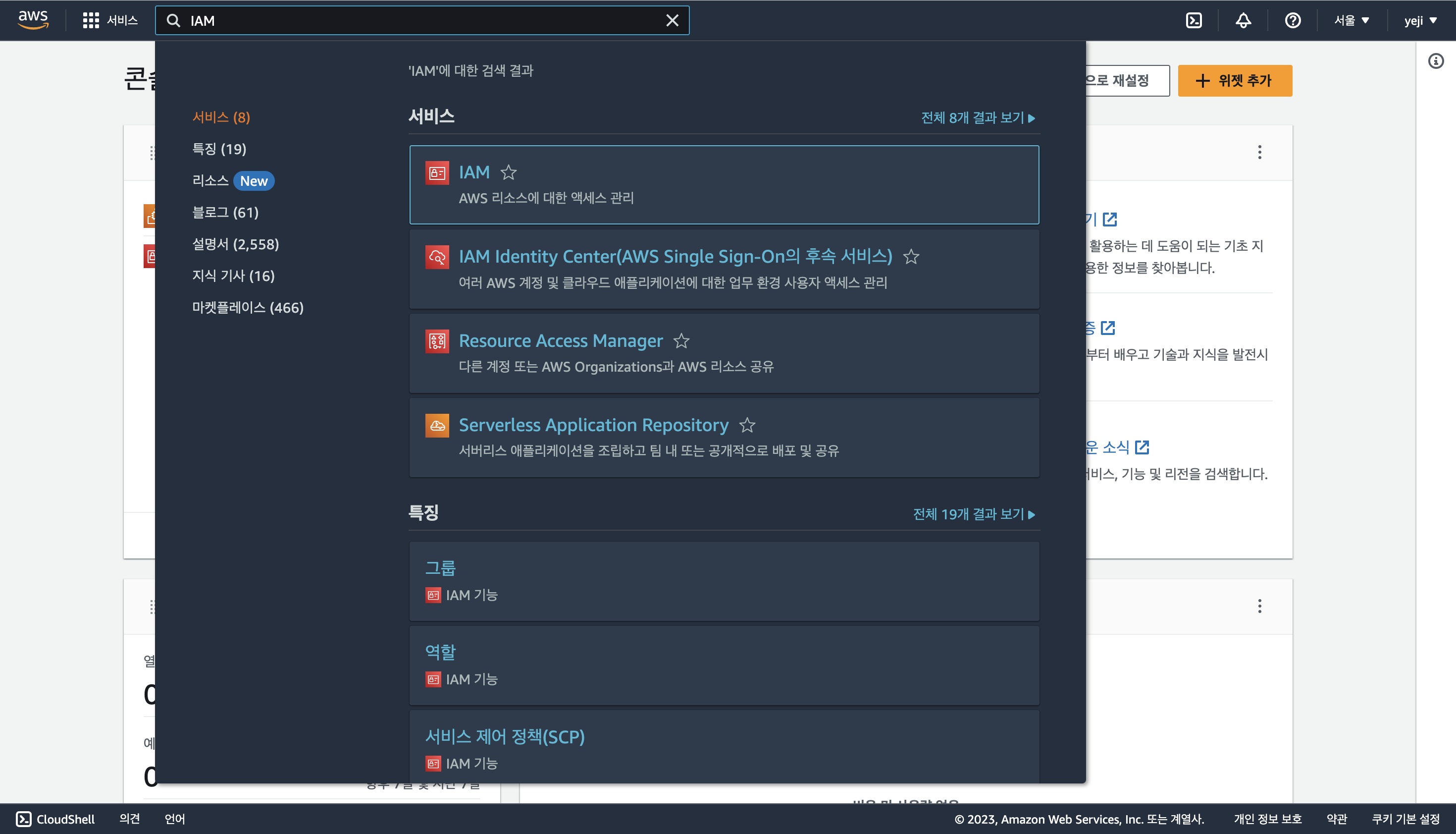IAM을 검색한다.